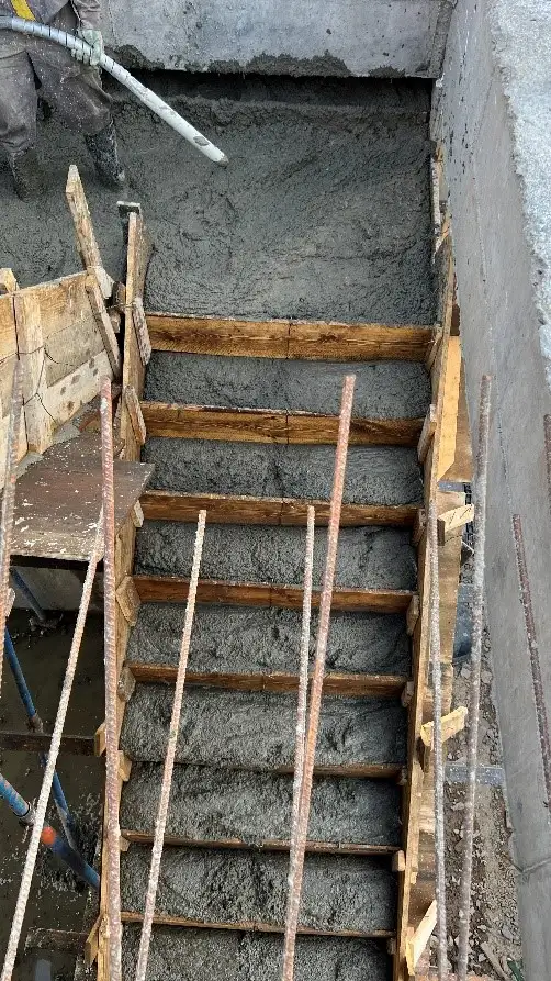 بحث دیگر مربوط به طراحی و اجرای پله به صورت دندانهای با بتن و کد ارتفاعی آن در پارکینگ، نیم طبقه و طبقات میباشد، که علاوه بر اینکه نحوه اجرا با این روش و افزایش ارتفاع پاگرد با استفاده از روش دستک کششی جهت تامین فضای گردش پارکینگ باعث از دست نرفتن آن گردید، این کار یک ایده در جهت اجرای کار درست و مطابق با اصول آیین نامه و یک کار مهندسی میباشد که فقط از یک مجری حرفهای بر میآید